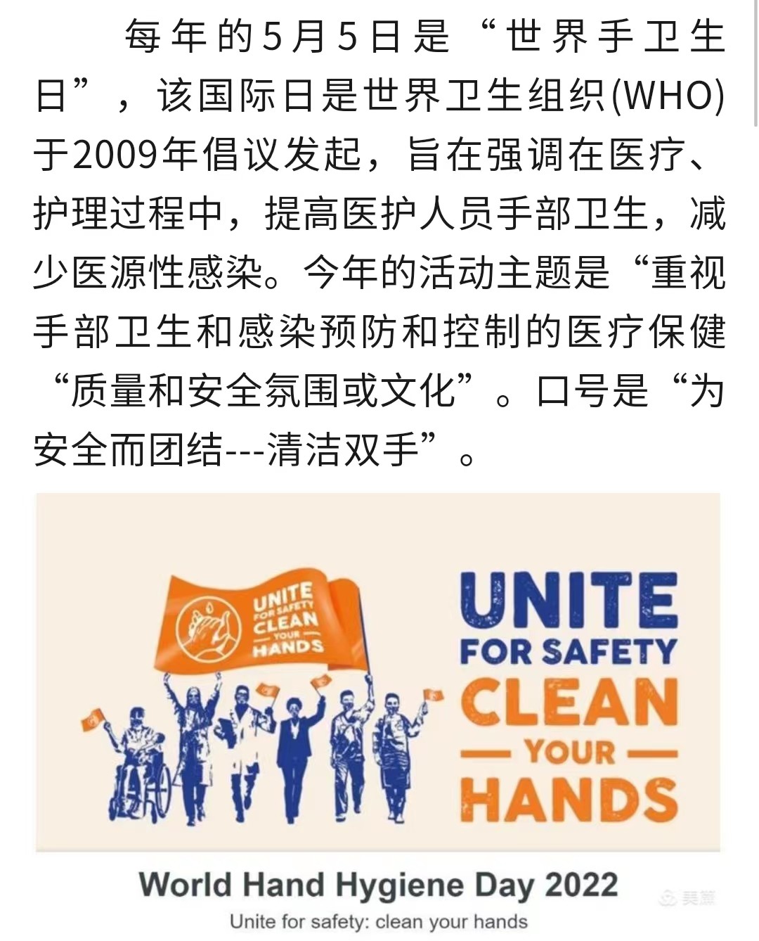 2022年世界手衛(wèi)生日:為安全而團結——清潔雙手